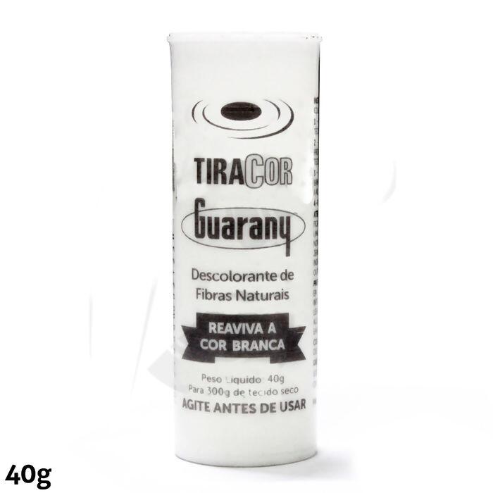 Tiracor para roupas Guarany em pó 40g para recuperação de roupas brancas, descoloração de tecidos, artesanato e muito mais. Cada unidade de 40g de Tiracor Guarany Descolorante pode ser utilizado para até 300g de tecido.