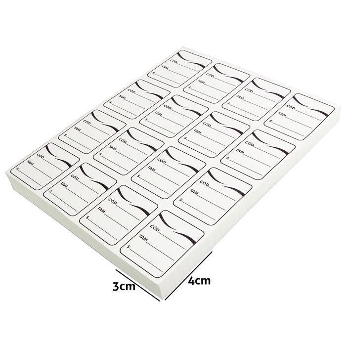 Etiqueta em papel cartão resistente, ideal para marcação de preço, tamanho e código de barras ou referência. Indicada especialmente para roupas, facilita a identificação e organização de peças em lojas, ateliês ou confecções. Pacote contendo 1000 unidades em 63 cartelas, prontas para uso prático e eficiente no dia a dia comercial.