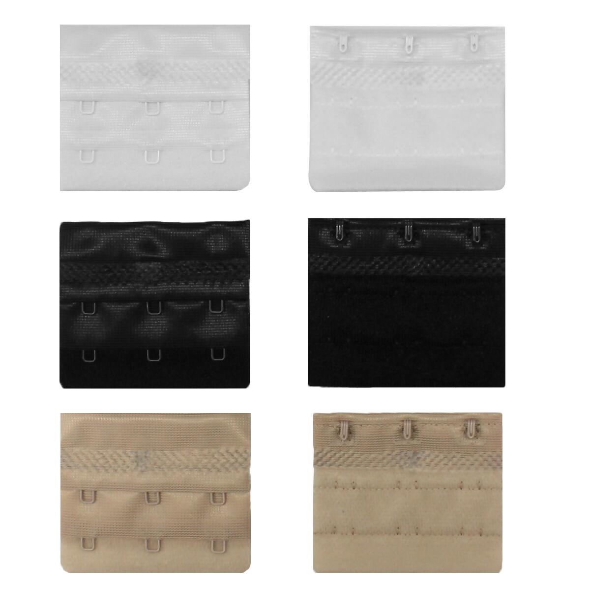 Fecho para Sutiã com 3 Ganchos, Pacote com 3 Pares, contém um par Branco, Bege e Preto. Este fecho oferece uma solução confiável para ajustar e confeccionar seu sutiã de acordo com suas necessidades, Feito de Poliamida e Poliester, tem um tamanho de 6cmx5,5m.