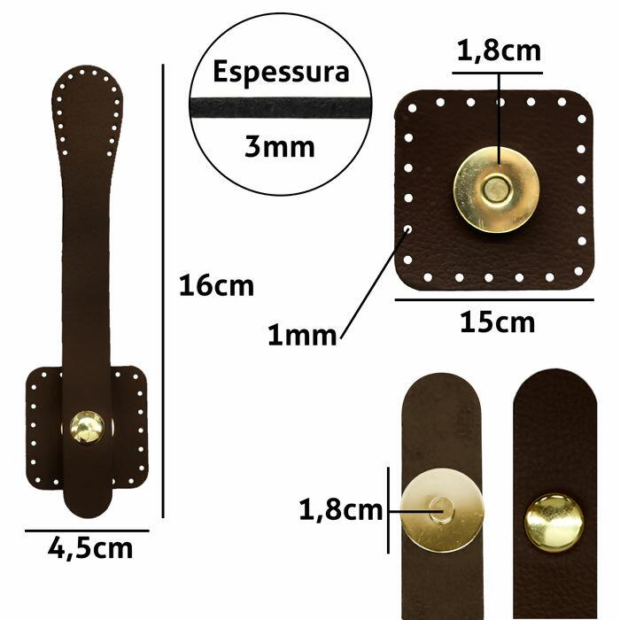 Fecho Imã para Bolsa Magnético Quadrado com Alça Café BS005 - 019892 Selecione a Cor