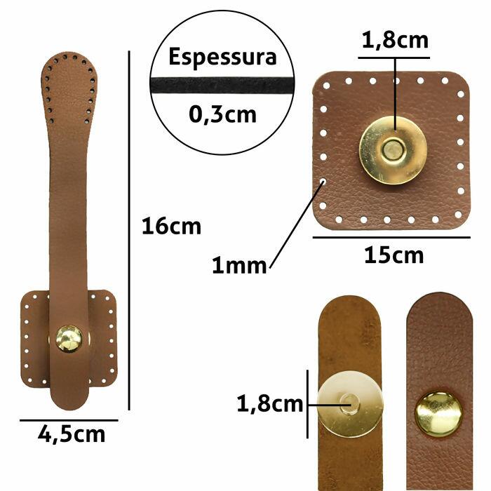 Fecho Imã para Bolsa Magnético Quadrado com Alça Marrom BS005 - 019895