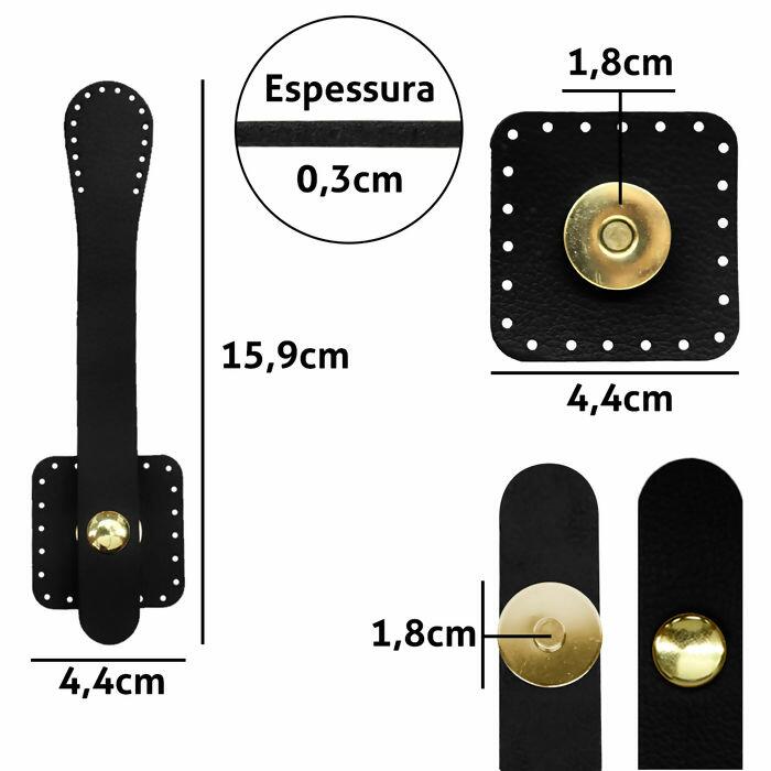 Fecho Imã para Bolsa Magnético Quadrado com Alça Preto BS005 - 019890