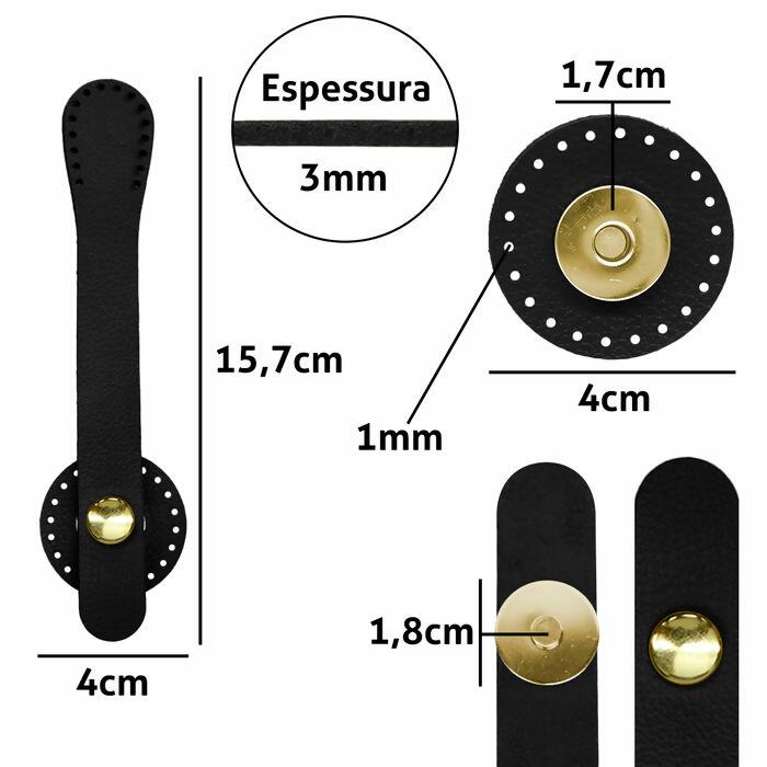 Observações Fecho Imã para Bolsa Magnético Redondo com Alça Preto BS002 - 019902