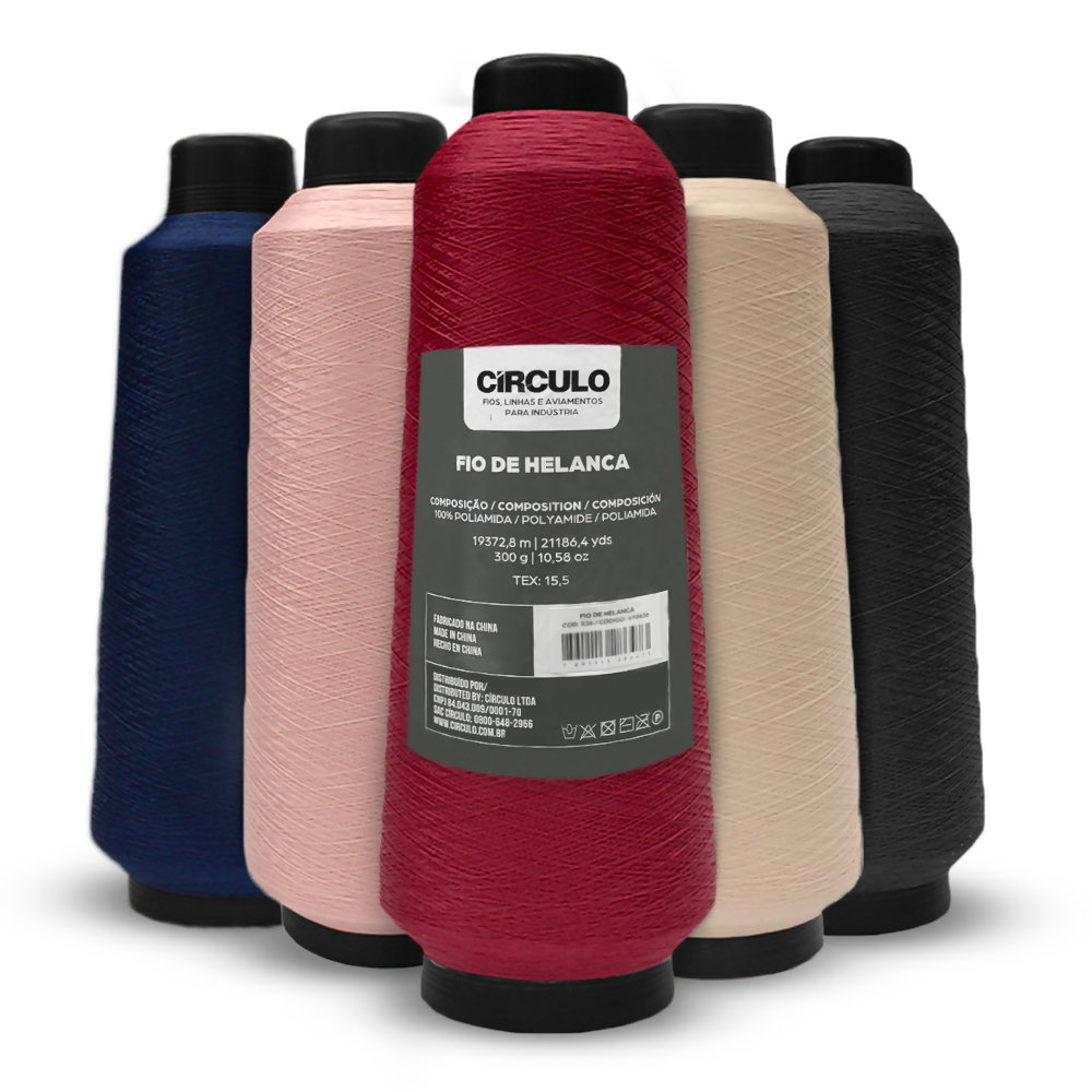 Fio Helanca Círculo, rolo contendo 300g de fio. A linha de costura Helanca é indicada para tecidos de elasticidade forte, usados em roupas de ginástica (fitness), e também para maiôs e biquínis por oferecer maior resistência contra quebras e reações químicas.