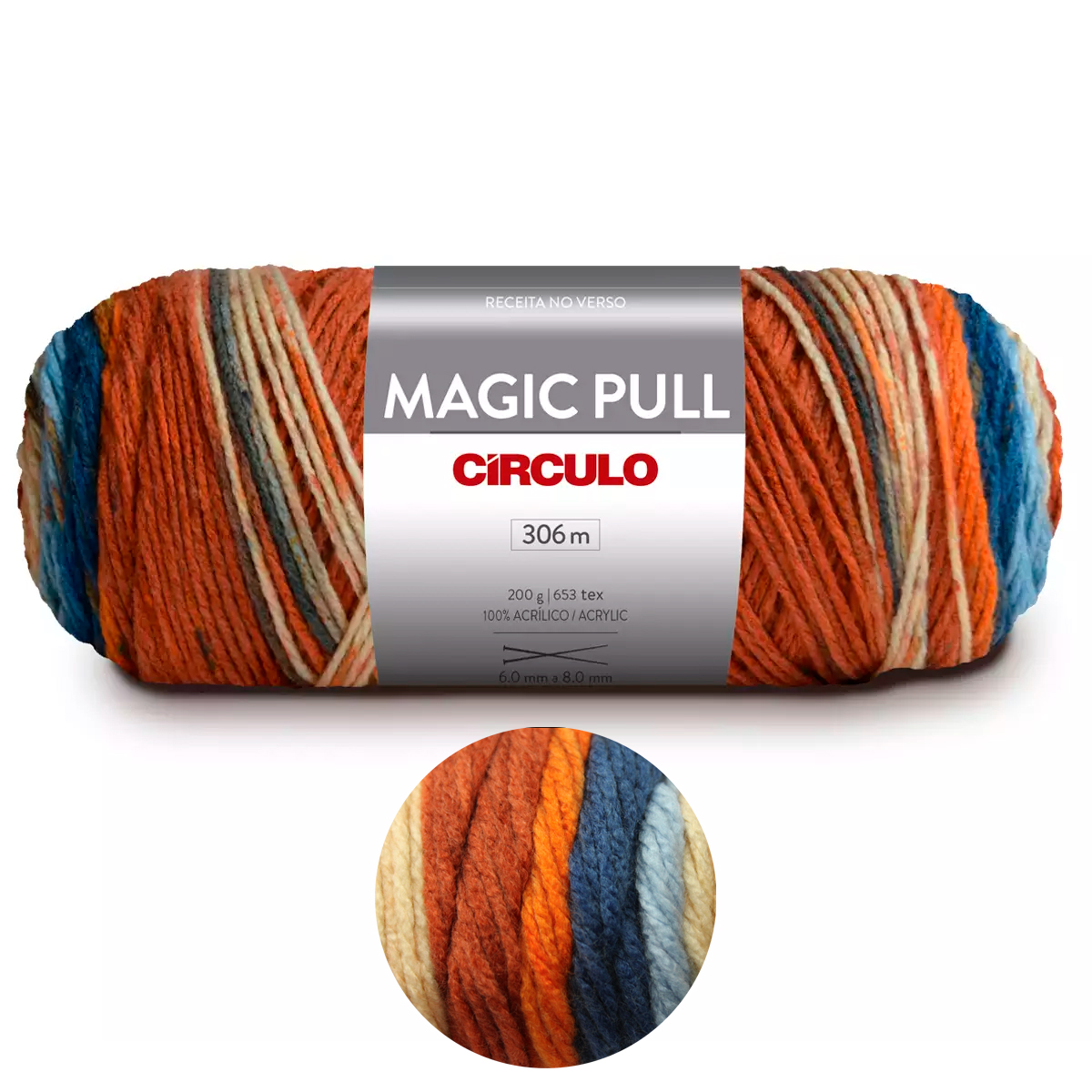 O Fio Magic Pull Círculo 306m é composto 100% acrílico, Tendo novelos diferenciados, a Lã Magic Pull é projetada para que o fio seja retirado do centro, facilitando a confecção das peças. A pontinha do fio está sinalizada com o selo do sistema “Easy Pull” - Puxe Fácil, patenteado pela Círculo. Magic Pull tem cores contrastantes que se unem em forma de listras com pequenos pontos de cor que decoram e criam efeitos alternados ao tecer a peça. TEX - 653