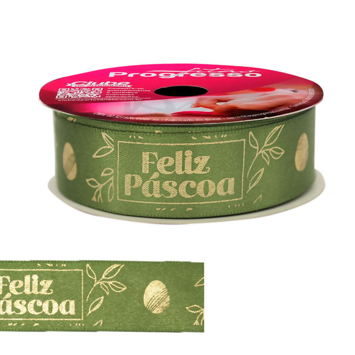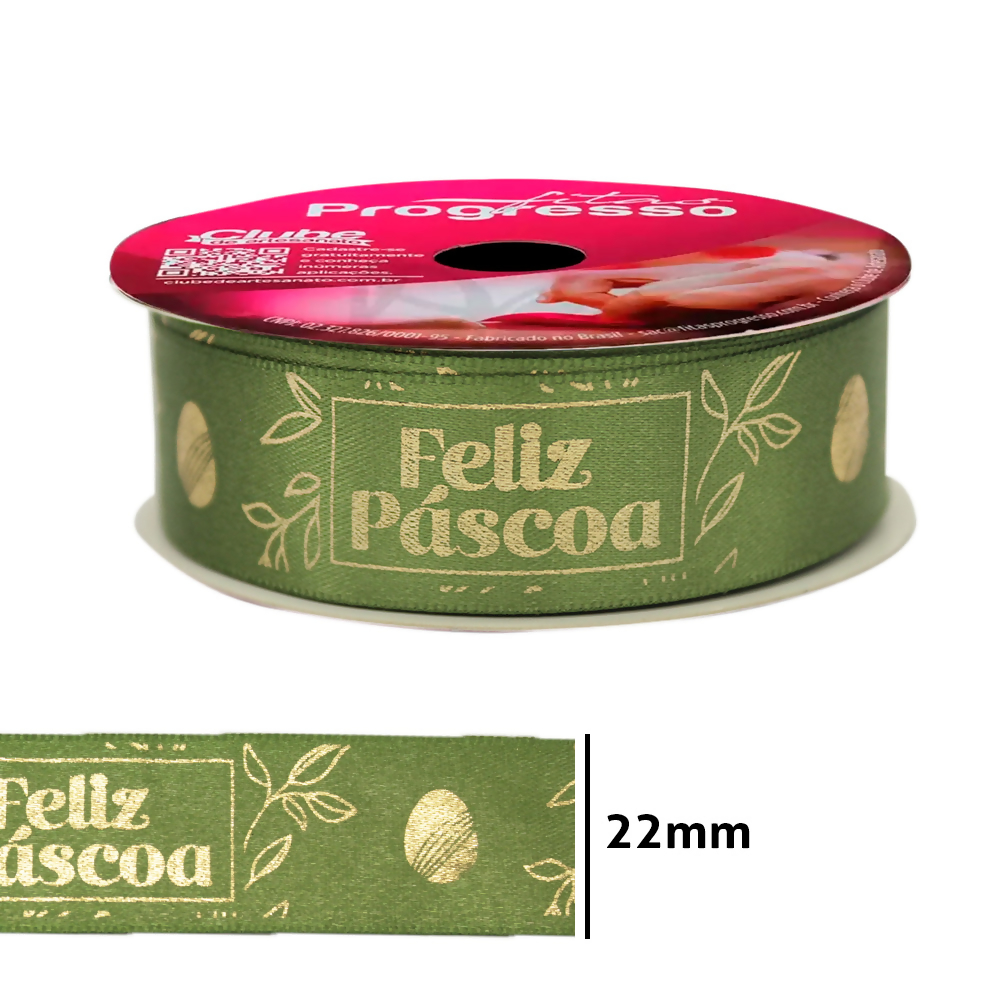 FORNECEDOR Fita de Cetim Estampada Feliz Páscoa 1107 Verde Progresso 22mm 10m - 022499