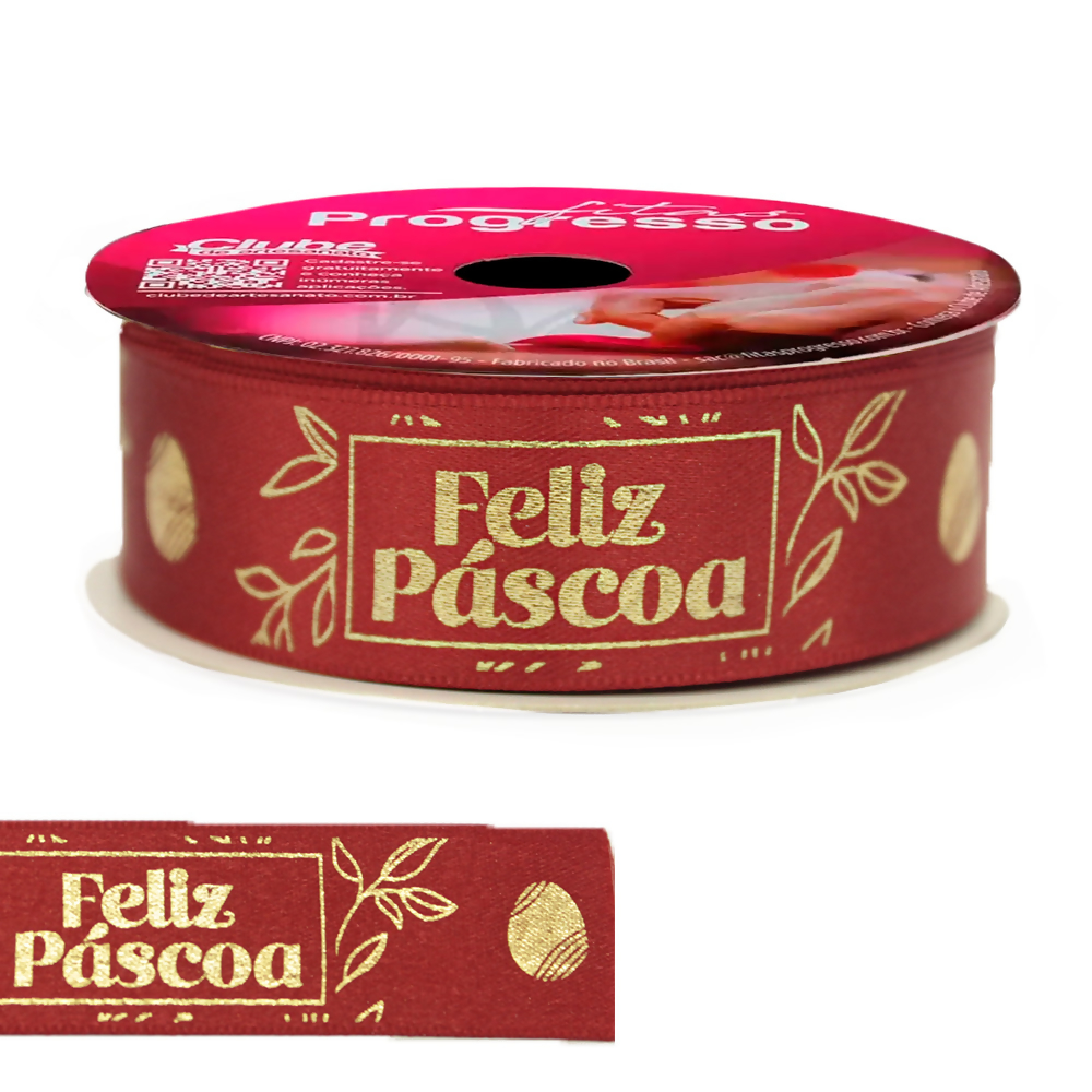 FORNECEDOR Fita de Cetim Estampada Feliz Páscoa 1109 Vermelho Progresso 22mm 10m - 022500