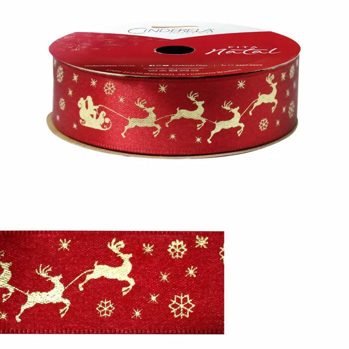 Fita cetim estampada Natal 292 marca Cinderela com 22mm, rolo contendo 10 metros. As fitas de cetim natalinas são ideais para confecção de laços, enfeites, embalagens, decoração e acessórios, tornando seu Natal muito mais alegre e decorado! Possui um toque suave com alta resistência.