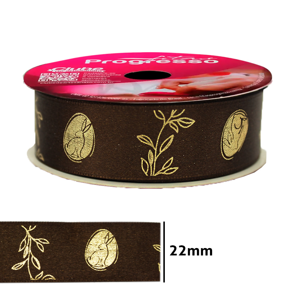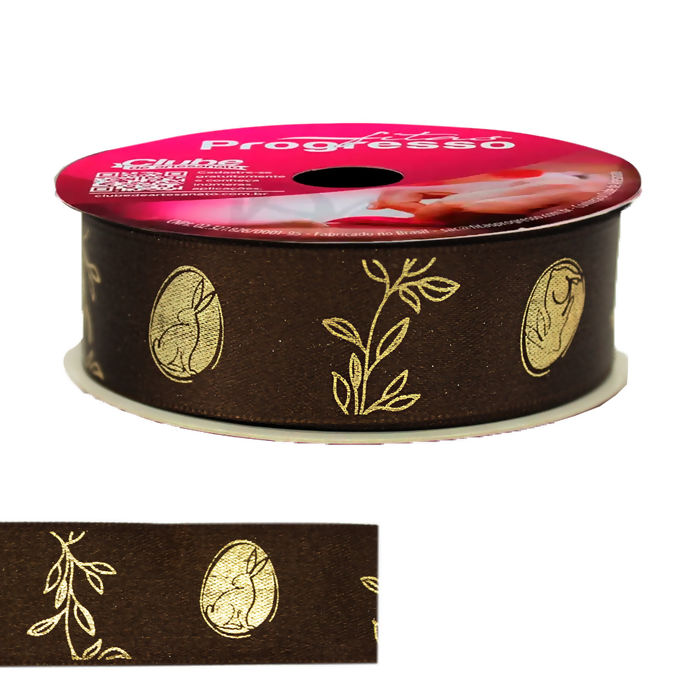 FORNECEDOR Fita de Cetim Estampada Ovo Gourmet Páscoa 1111 Progresso 22mm 10m - 022498