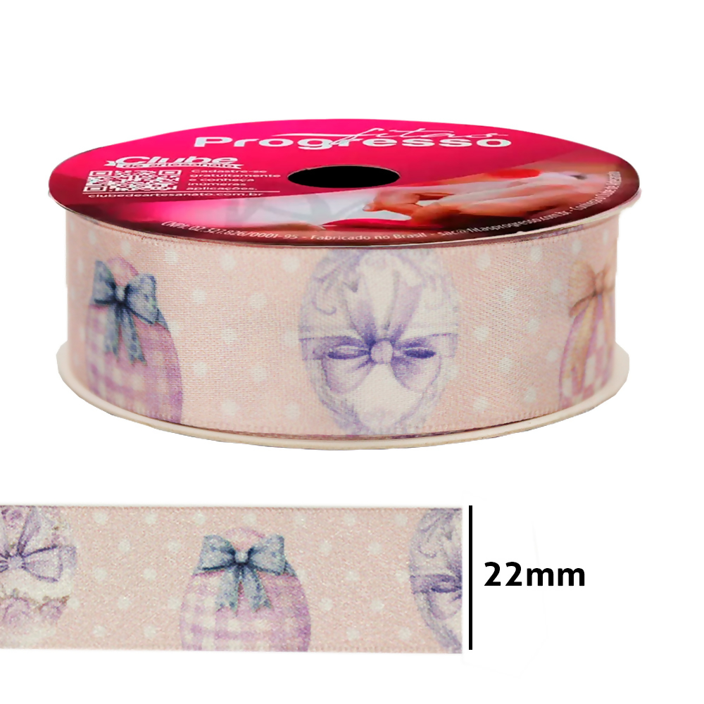 Observações Fita de Cetim Estampada Ovo Páscoa 231 Progresso 22mm 10m - 022502