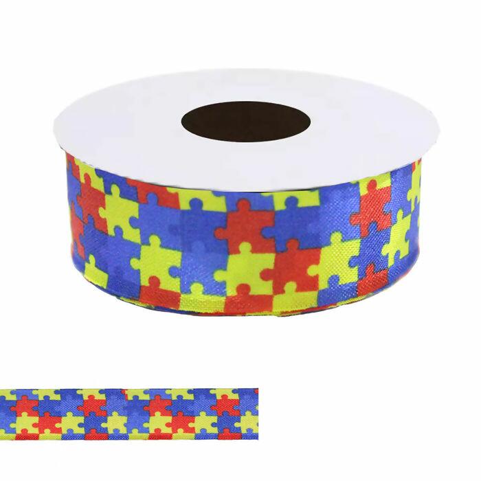 FORNECEDOR Fita de Cetim Estampada Quebra Cabeça Autismo DC.105 Dupla Face 25mm Bela Fita 10m - 018597