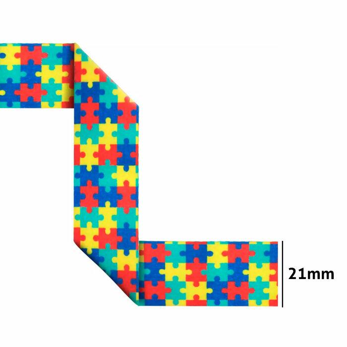 FORNECEDOR Fita de Cetim Estampada Quebra-Cabeça Autismo Dupla Face 21mm Fitas Progresso 40m - 018940