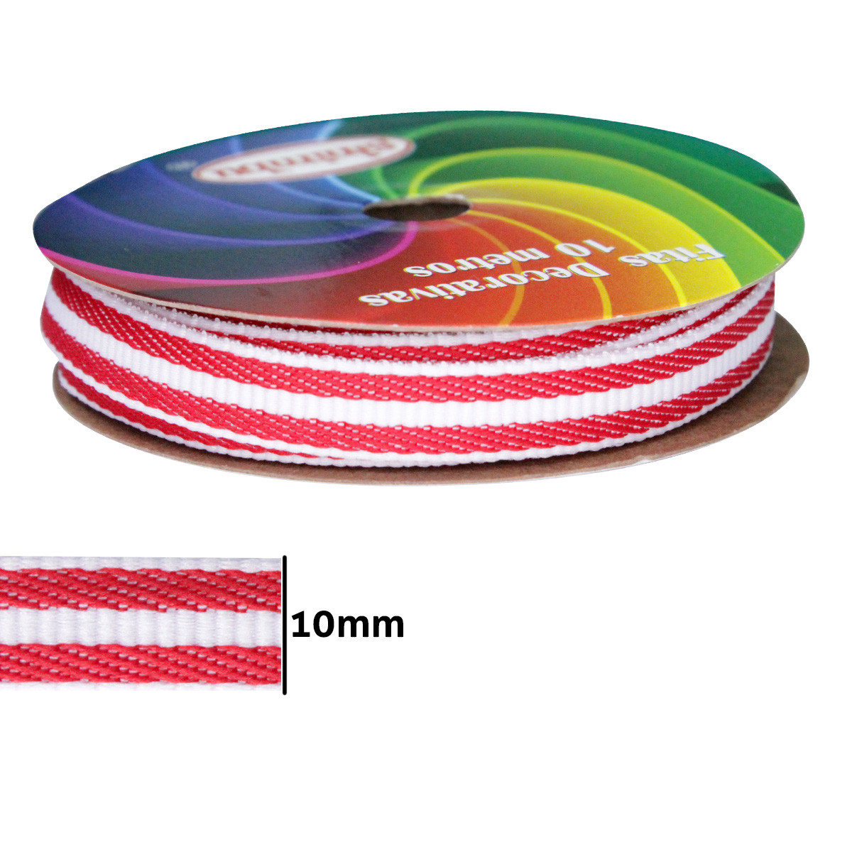 Fita Decorativa Listrada Branco 1877/10 10mm Sinimbu 10m - 016095 Vermelho