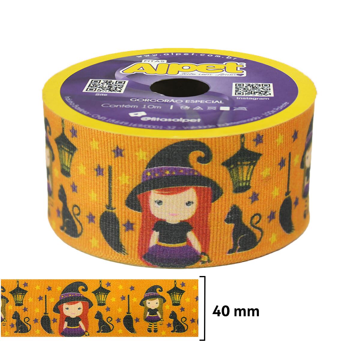 FORNECEDOR Fita Gorgurão Estampada 2852 Halloween Bruxinha Laranja 40mm 10m - 003991