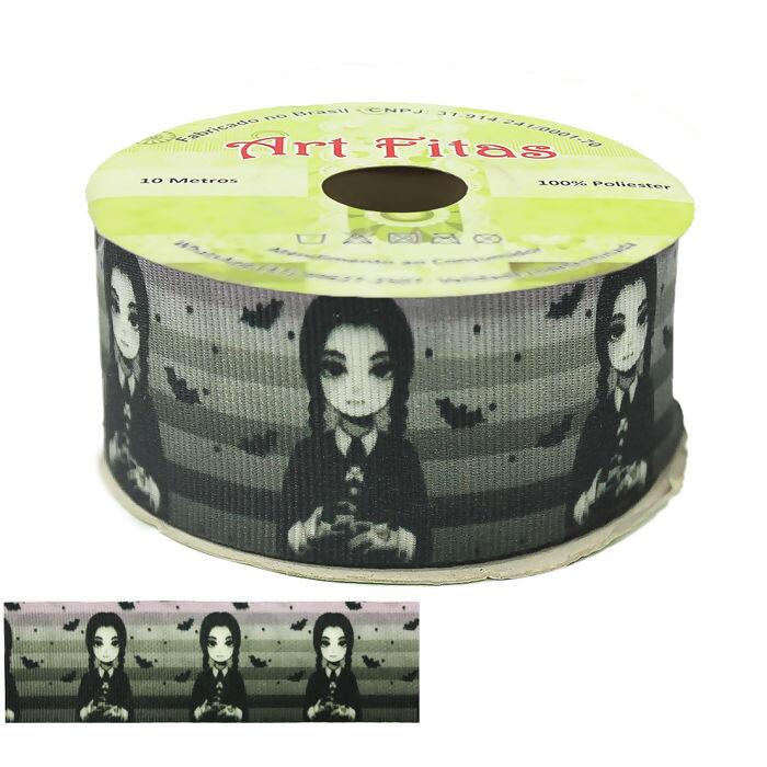 Fita Gorgurão Estampada 2878 Wandinha 38mm Art Fitas 10m - 018608