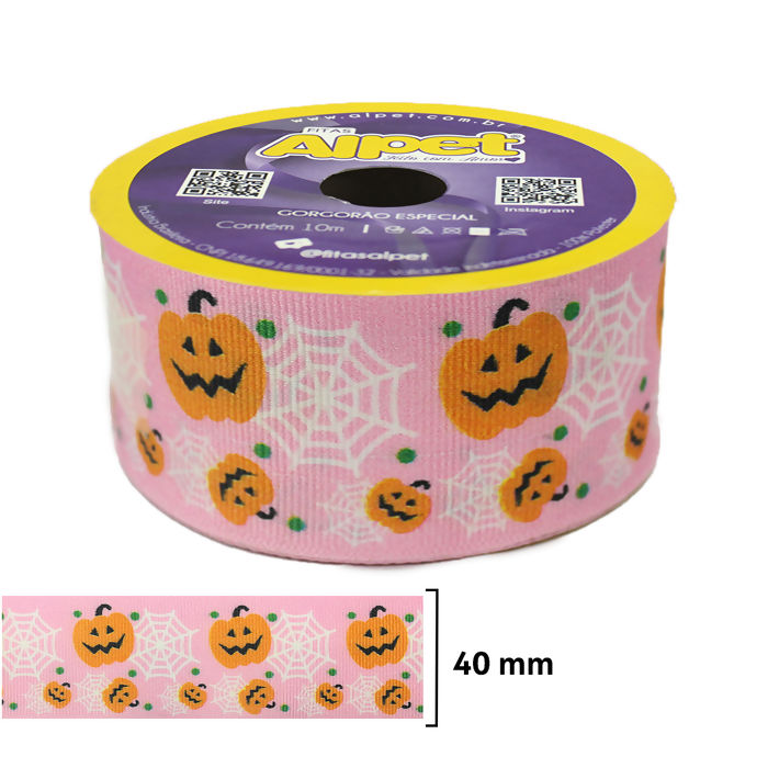 Dados Técnicos Fita Gorgurão Estampada 4322 Halloween Abóbora Rosa 40mm 10m - 003993