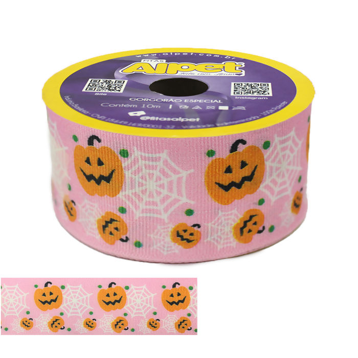 A Fita Gorgurão da marca Alpet contém Estampa Halloween. É produzida em 100% Poliéster, oferecendo resistência e excelente durabilidade. Com 40mm de largura e rolo de 10 metros, é ideal para fazer laços, customizar roupas e acessórios, dar acabamento a embalagens, lembrancinhas e decorar festas.