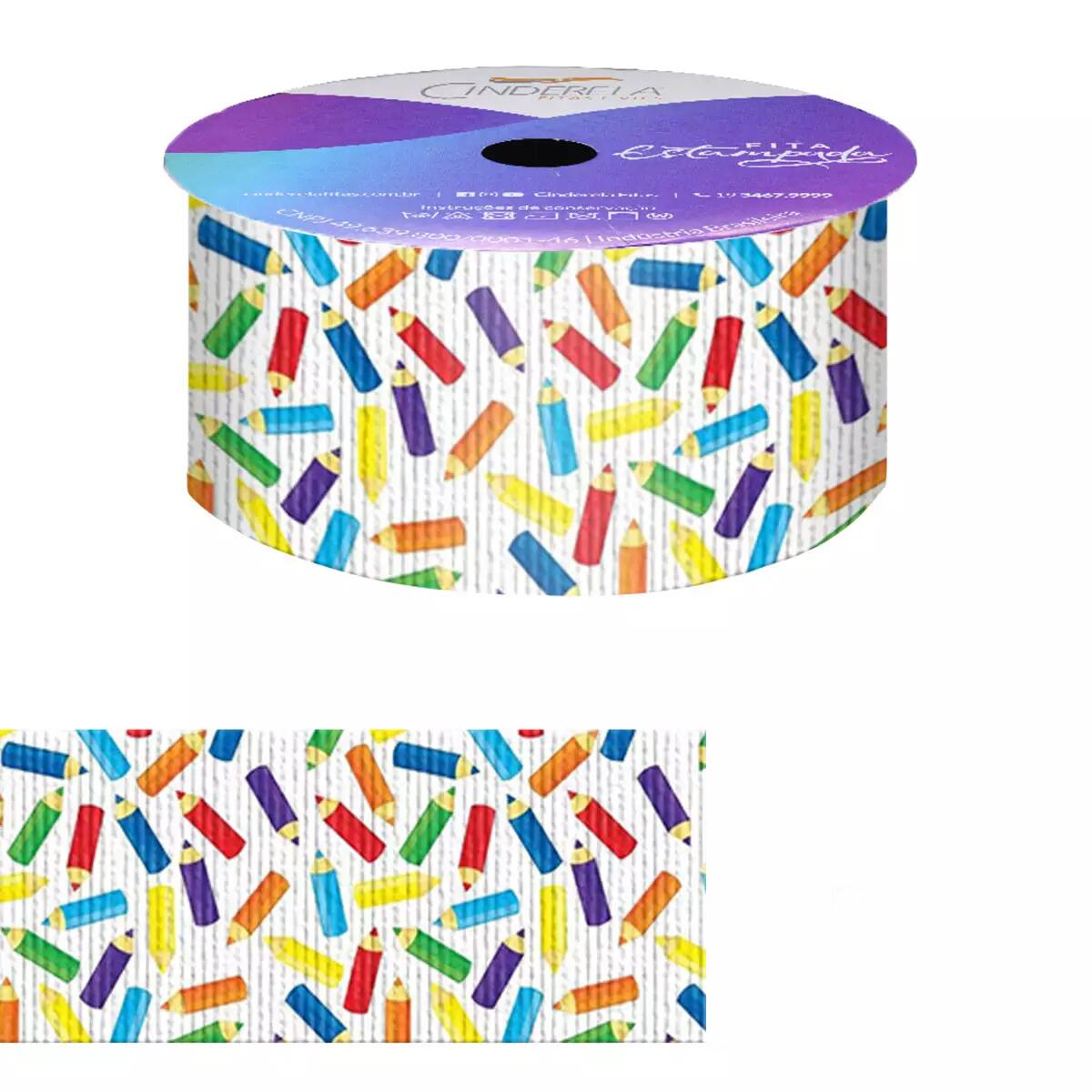 FORNECEDOR Fita Gorgurão Estampada 747 Lápis 38mm Cinderela 10m - 005661