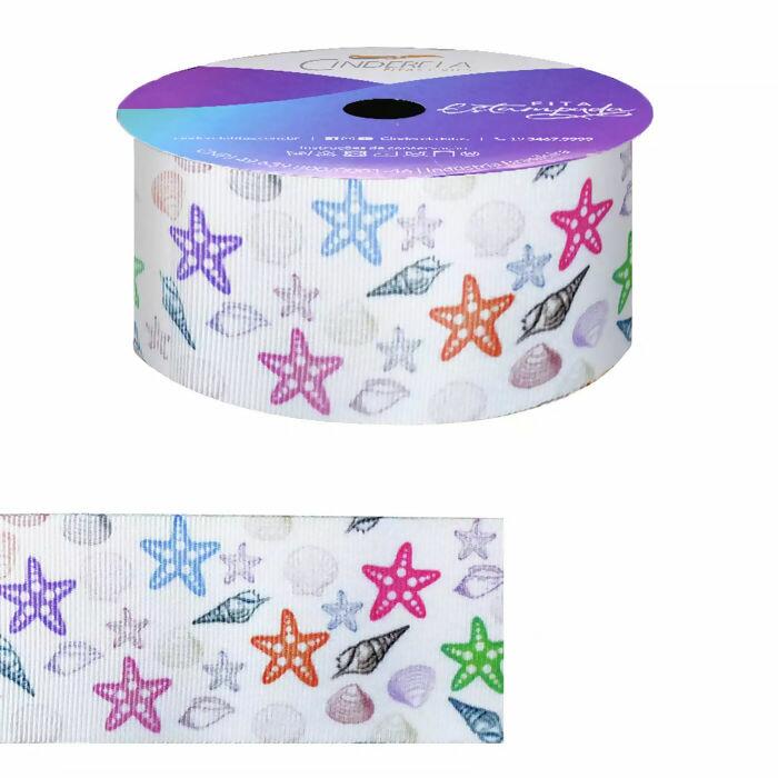 Observações Fita Gorgurão Estampada 830 Estrela 38mm Cinderela 10m - 005681