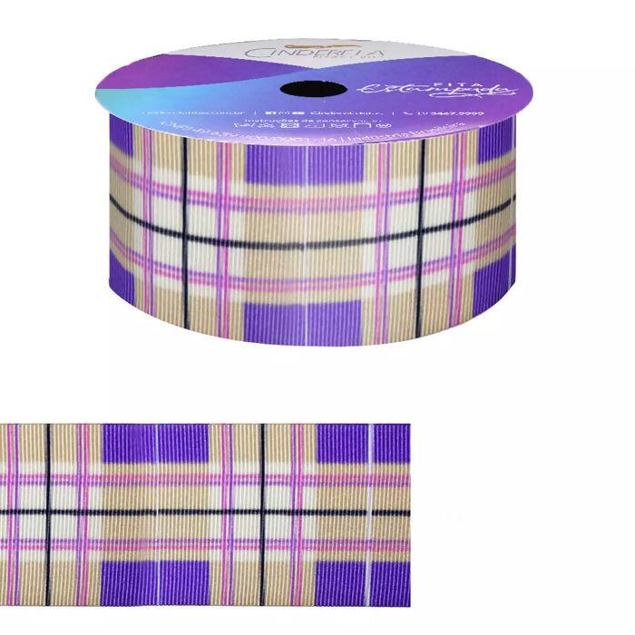 Fita Gorgurão Estampada 855 Xadrez 38mm Cinderela 10m