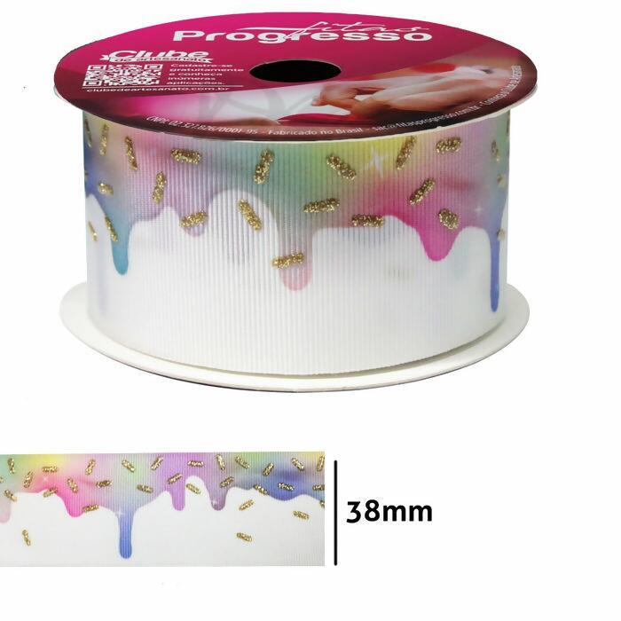 FORNECEDOR Fita Gorgurão Estampada Arco-Íris 011 Progresso 38mm 10m - 017585