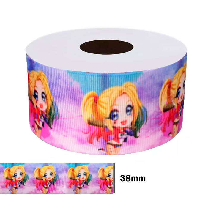 Fita estampada de gorgurão com 10 metros de fita de 38mm de largura, feita totalmente de poliéster, as fitas de gorgurão estampada são resistentes e ótimas para a criação de laços personalizados, alças, embalagem de presente e artesanato em geral possuindo uma variedade de estampas infinitas! Modelo Arlequina PE.285