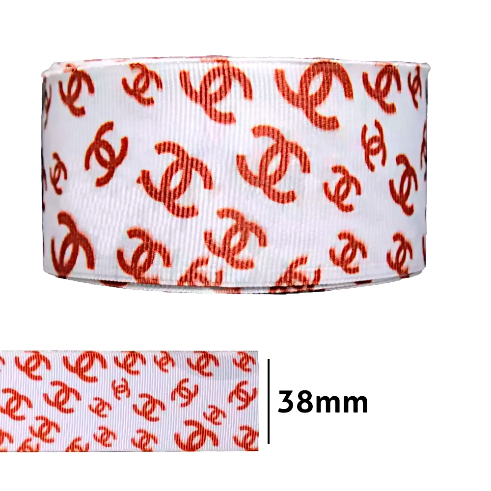 FORNECEDOR Fita Gorgurão Estampada CH Grife Dourado MF. 10 Bela Fita 38mm 10m - 999701