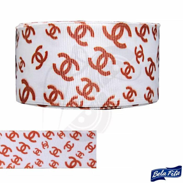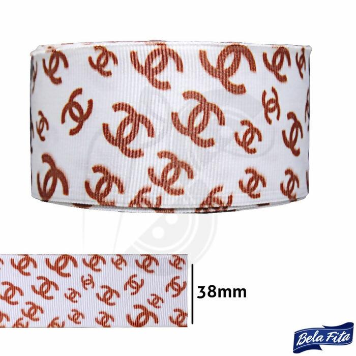 Observações Fita Gorgurão Estampada CH Grife Dourado MF. 10 Bela Fita 38mm 10m - 999701