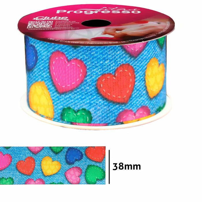 FORNECEDOR Fita Gorgurão Estampada Coração 325 Progresso 38mm 10m - 019663 Junina