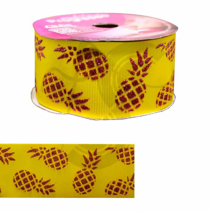 FORNECEDOR Fita Gorgurão Estampada Glitter Abacaxi 001 Progresso 38mm 10m - EGP009SG-001