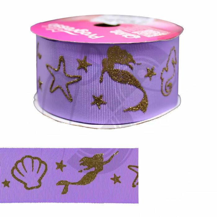 Fita estampada com glitter gorgurão EGP marca Progresso com 10 metros, feita totalmente de poliéster, as fitas de gorgurão estampada são resistentes e ótimas para a criação de laços personalizados, alças, embalagem de presente e artesanato em geral! Modelo Sereia Lilás com 38mm de largura.