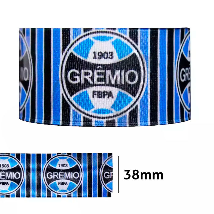 Fita estampada de gorgurão com 10 metros de fita de 38mm de largura, feita totalmente de poliéster, as fitas de gorgurão estampada são resistentes e ótimas para a criação de laços personalizados, alças, embalagem de presente e artesanato em geral possuindo uma variedade de estampas infinitas! Modelo Grêmio TM. 16