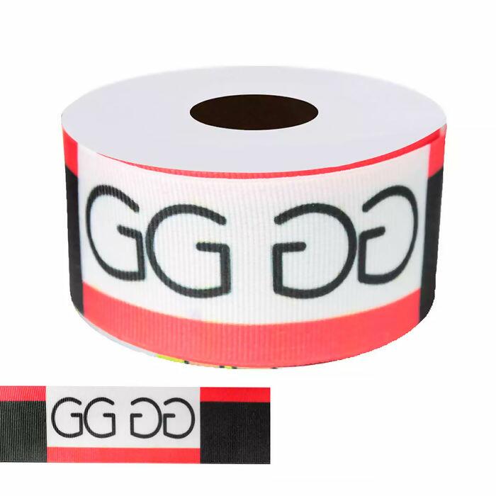 Descrição Fita Gorgurão Estampada Grife GC 2 Bela Fita 38mm 10m - 017996
