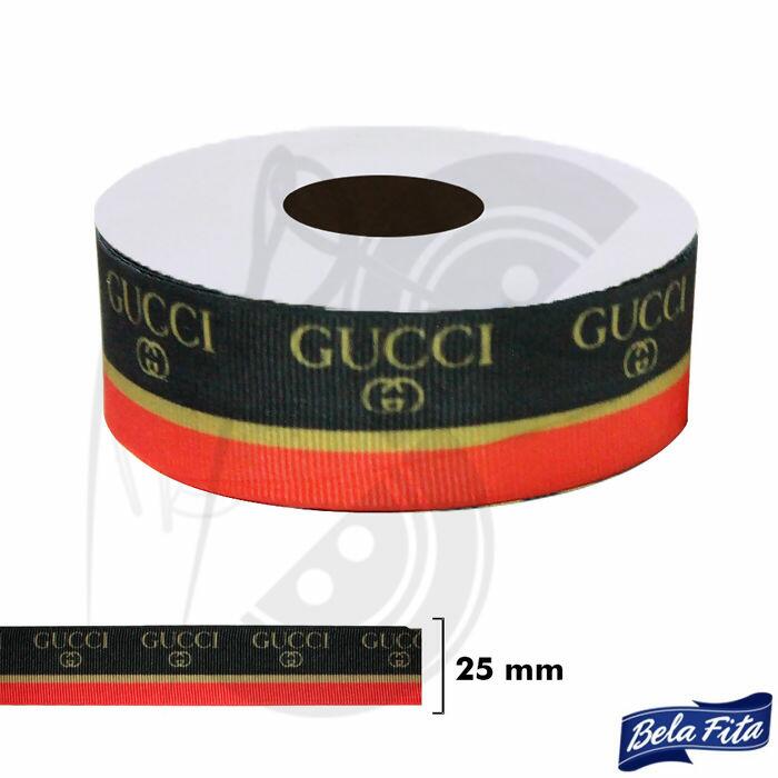 FORNECEDOR Fita Gorgurão Estampada Grife GC Preto MF. 21 Bela Fita 25mm 10m - 1190801