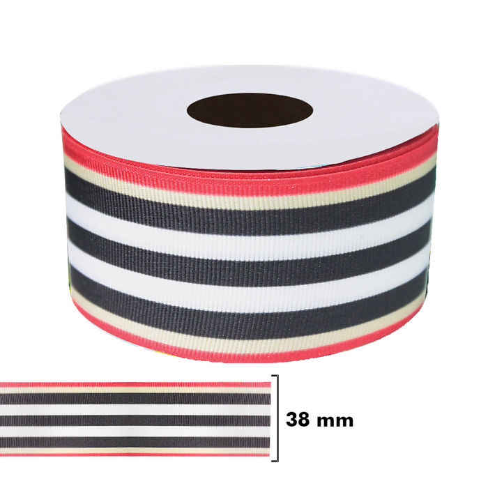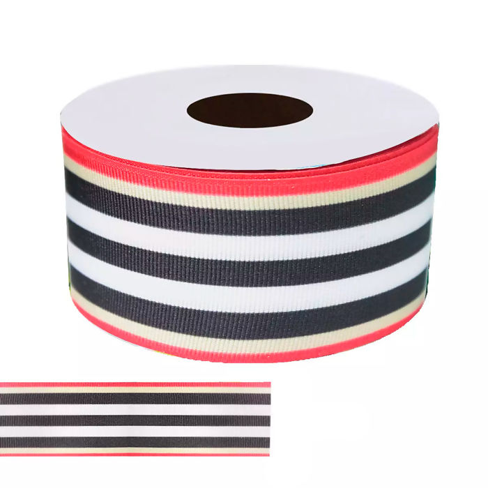 Descrição Fita Gorgurão Estampada Grife Listras Bela Fita 38mm 10m - 017993