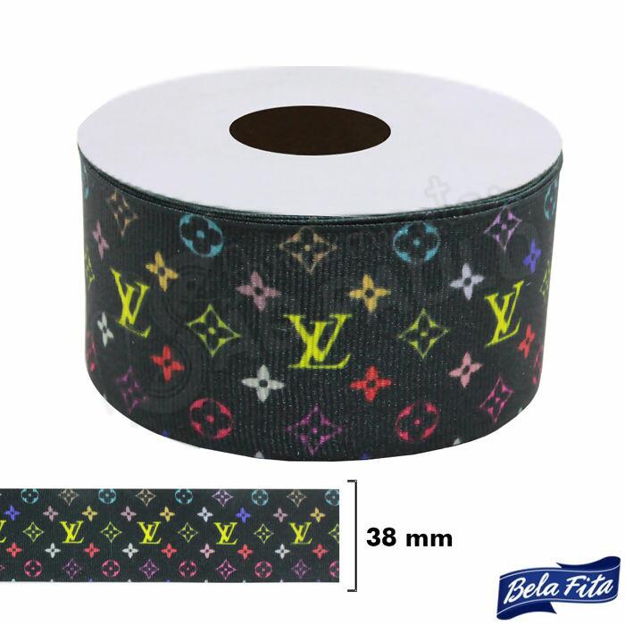 FORNECEDOR Fita Gorgurão Estampada LV Grife Preto MF. 25 Bela Fita 38mm 10m - 856701