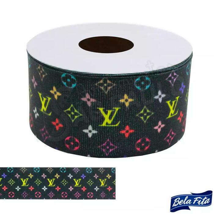 Não Achou a Quantidade que Precisa ? Fita Gorgurão Estampada LV Grife Preto MF. 25 Bela Fita 38mm 10m - 856701