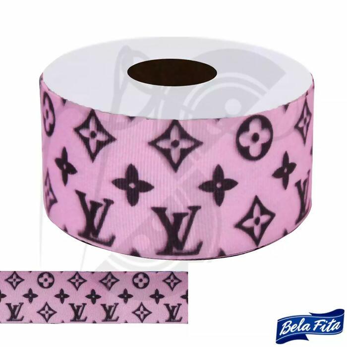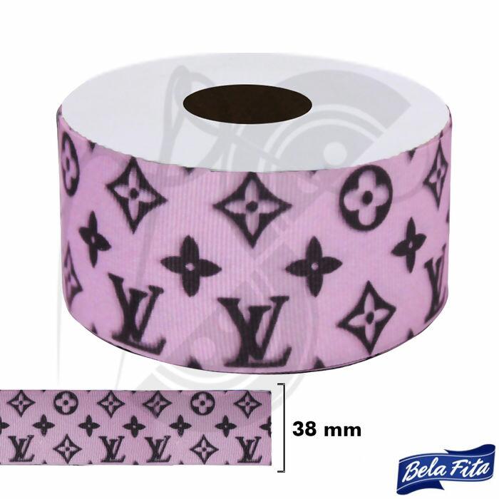 Não Achou a Quantidade que Precisa ? Fita Gorgurão Estampada LV Grife Rosa MF. 50 Bela Fita 38mm 10m - 999801