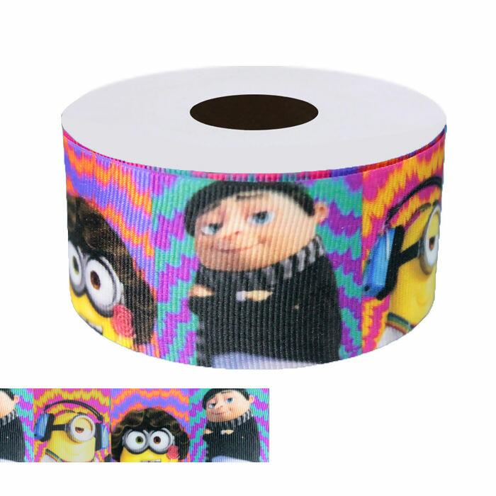 Fita estampada de gorgurão com 10 metros de fita de 38mm de largura, feita totalmente de poliéster, as fitas de gorgurão estampada são resistentes e ótimas para a criação de laços personalizados, alças, embalagem de presente e artesanato em geral possuindo uma variedade de estampas infinitas! Modelo Minion PE.338