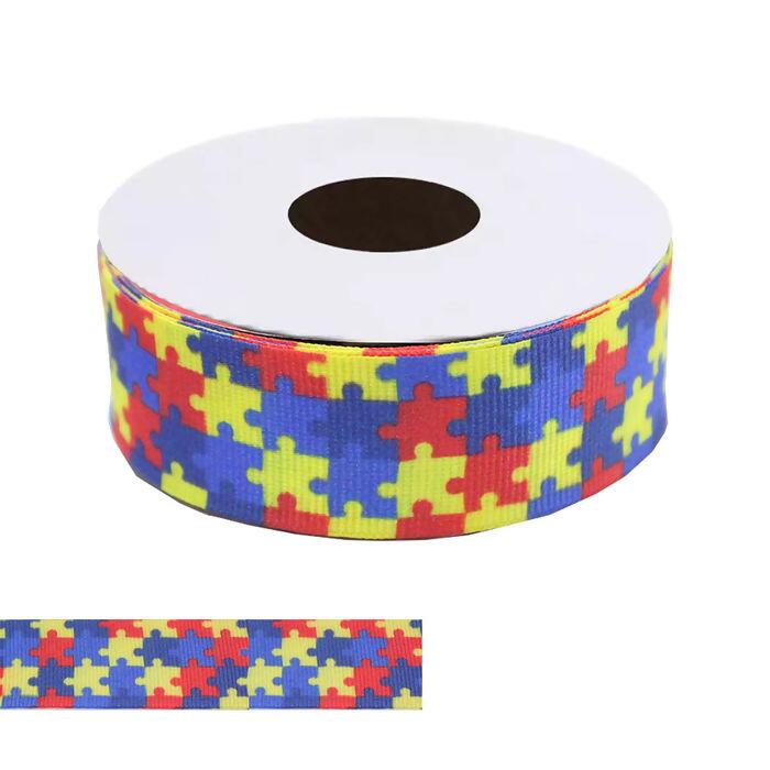 FORNECEDOR Fita Gorgurão Estampada Quebra-Cabeça Autismo DC.105 Dupla Face 25mm Bela Fita 10m - 018598