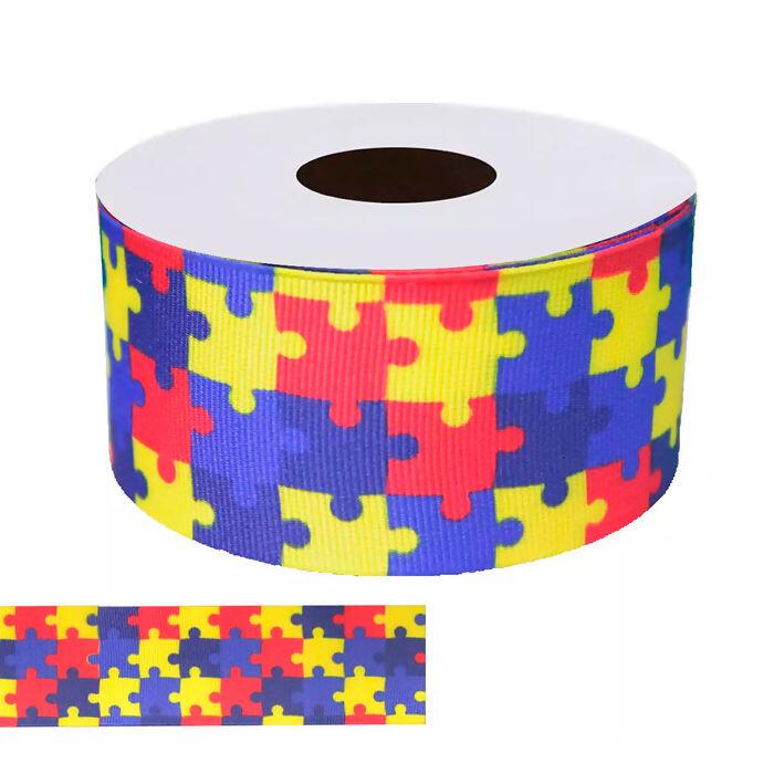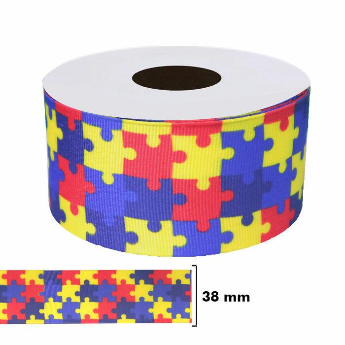 FORNECEDOR Fita Gorgurão Estampada Quebra-Cabeça Autismo DC.105 Dupla Face 38mm Bela Fita 10m - 018080