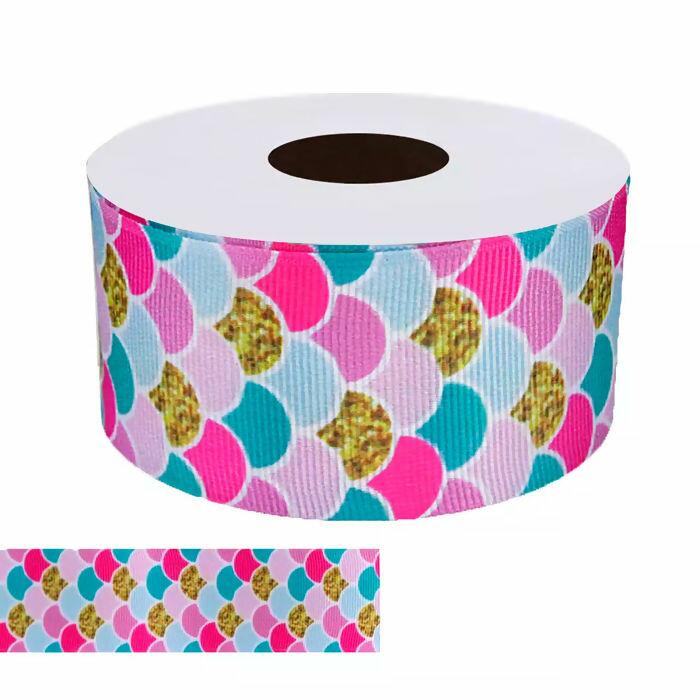 Fita estampada de gorgurão com 10 metros de fita de 38mm de largura, feita totalmente de poliéster, as fitas de gorgurão estampada são resistentes e ótimas para a criação de laços personalizados, alças, embalagem de presente e artesanato em geral possuindo uma variedade de estampas infinitas! Modelo Sereia GM.103