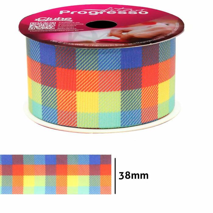 FORNECEDOR Fita Gorgurão Estampada Xadrez 274 Progresso 38mm 10m - 019664 Junina