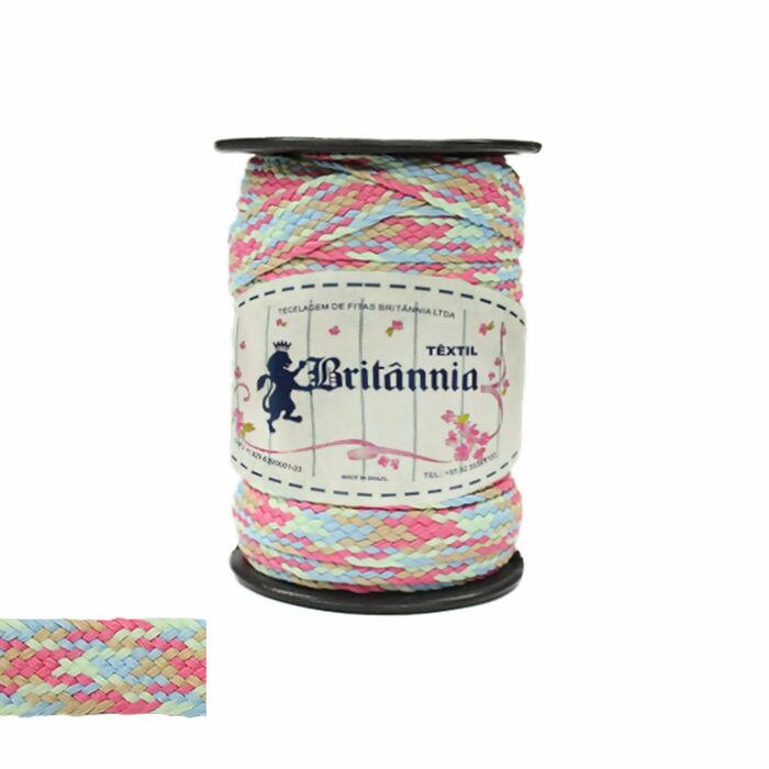 Cordão Chato 7943/13P Colorido Britânnia, com 10 metros de comprimento e 1,5cm de largura, é a fita rígida 100% Poliéster, que oferece durabilidade e resistência, sendo utilizada para diversas finalidades como a amarração e ajuste de calçados, vestuário (bermudas, moletons), confecção de bolsas e mochilas, e em artesanato em geral.