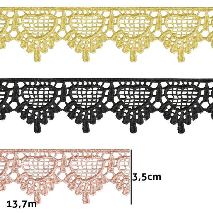 Guipir em rolo CHL-590, cada pacote contém aproximadamente 13,7m (15Y) de guipir com largura de 3,5cm. Indicado para Artesanatos, Decoração de Roupas, Trabalhos em Patchwork, Costura Criativa, Pano de Copa e Toalhas.