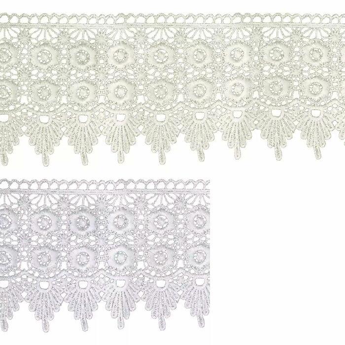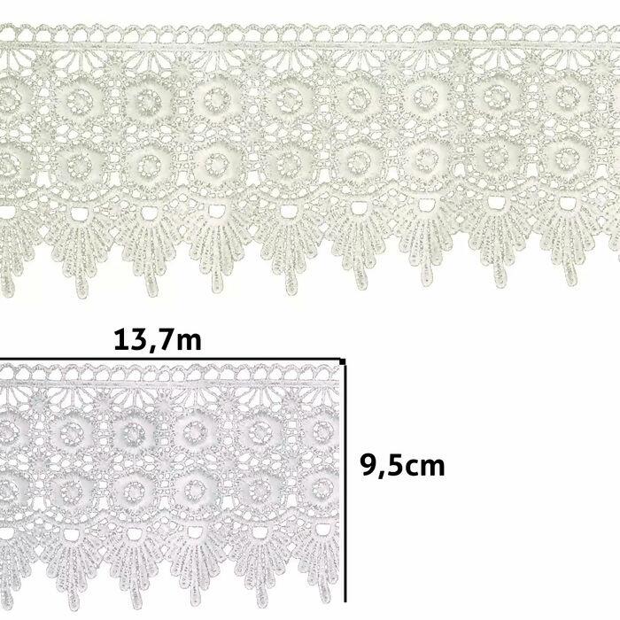 100% Poliéster 9,5cm, perfeito para acabamentos delicados Disponível nas cores Creme e Branco Indicado para artesanatos, decoração de roupas, costura, panos e toalhas