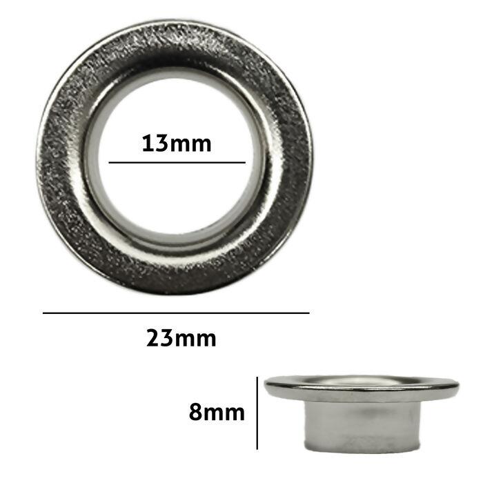 Ilhós com garra Nº2 FN feito totalmente de ferro niquelado, cada pacote contém cerca de 200 unidades do ilhós. O Ilhós de metal com garra é indicado para diversas aplicações como roupas, bolsas, calçados entre outros acessórios, ideal para passagem de cordões, fitas e cadarços.