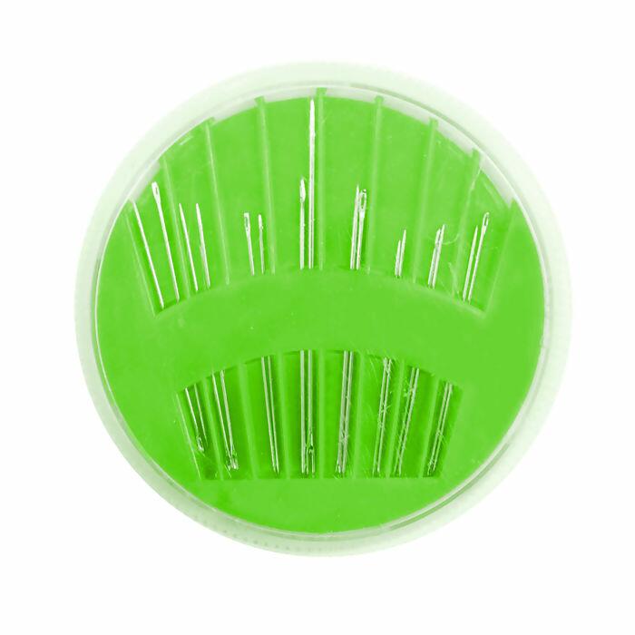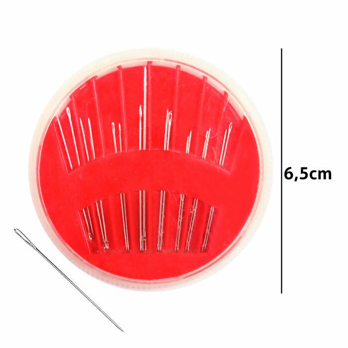Kit Agulha de Mão, 1 kit contendo 16 agulhas. Conta com 8 divisórias contendo 2 agulhas em cada. Ideal para manter organizado suas agulhas. Disco feito de plástico e agulhas feitas de metal resistente com tamanhos variados.