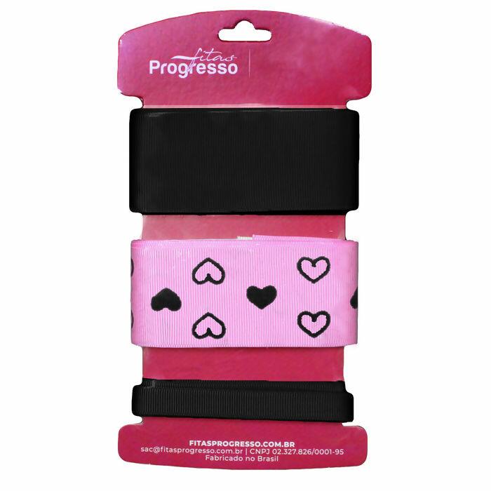 Kit Fita Gorgurão Coração 003 KGL002 com 3 Fitas - 016915