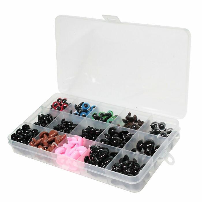 Kit de olhos e focinhos para boneco de pelúcia com trava, contendo 280 olhos/focinhos e 280 travas. Olhos e focinhos para amigurumi, bonecas, bonecos, bichos de pelúcia, ursos e trabalhos artesanais! Contém travas perfeitas para evitar com que as peças sejam removidas, evitando com que crianças possam tira-las
